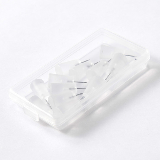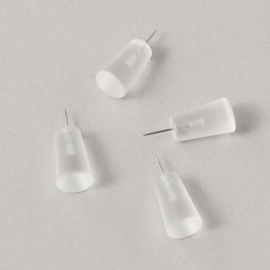 Komplet 12 pinezek tablicowych z główkami w polipropylenowym pojemniczku z praktycznym otwarciem. Cienka igła nie pozostawia śladów po usunięciu.