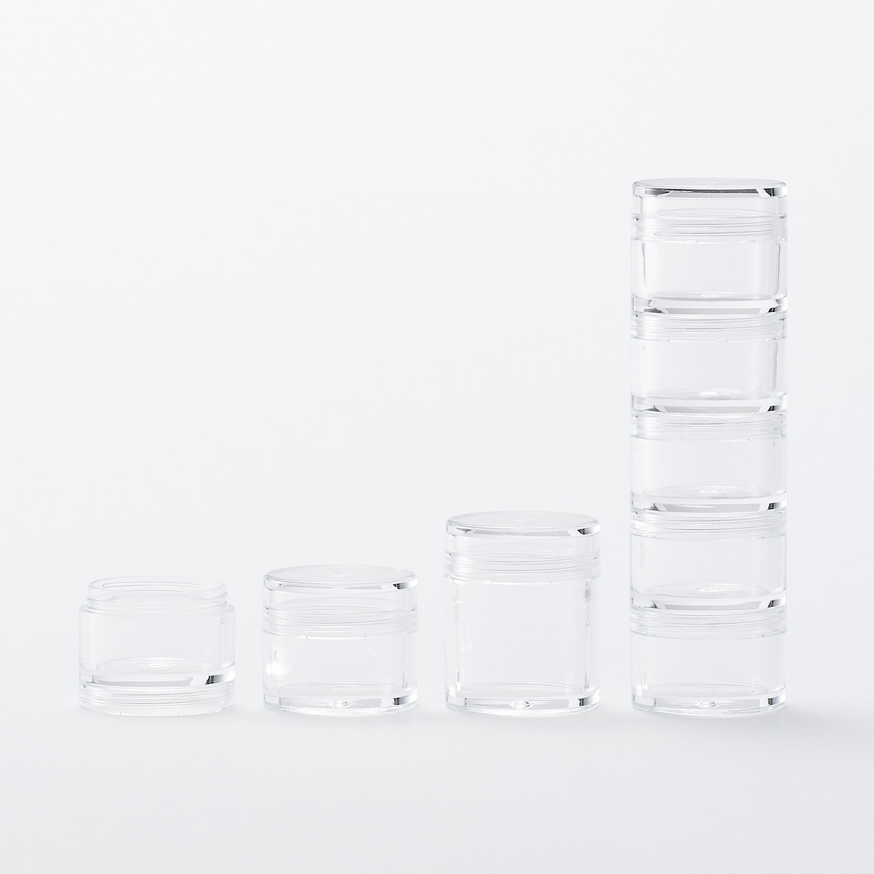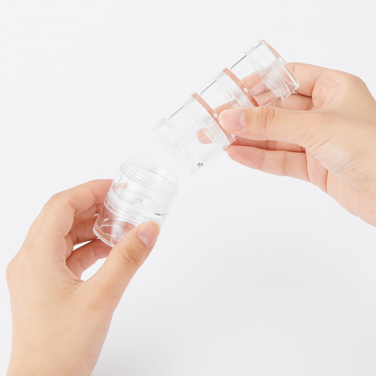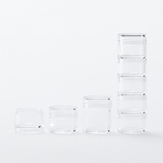 Zestaw 5 pojemników na krem, tabletki lub drobne akcesoria. Każdy z pojemników można łatwo rozdzielić zgodnie z potrzebami. Zestaw można również powiększyć o dodatkowe pojemniki.