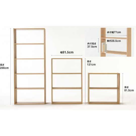 Szeroki regał dębowy z 5 półkami 81,5 x 28,5 x 200cm