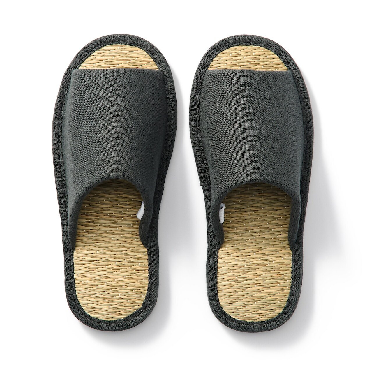 Wygodne, lniane kapcie z oddychającą podeszwą wykonaną z trawy igusa (trawa szuwarowa). Naturalny, przewiewny materiał zapewni komfort w letnie dni.