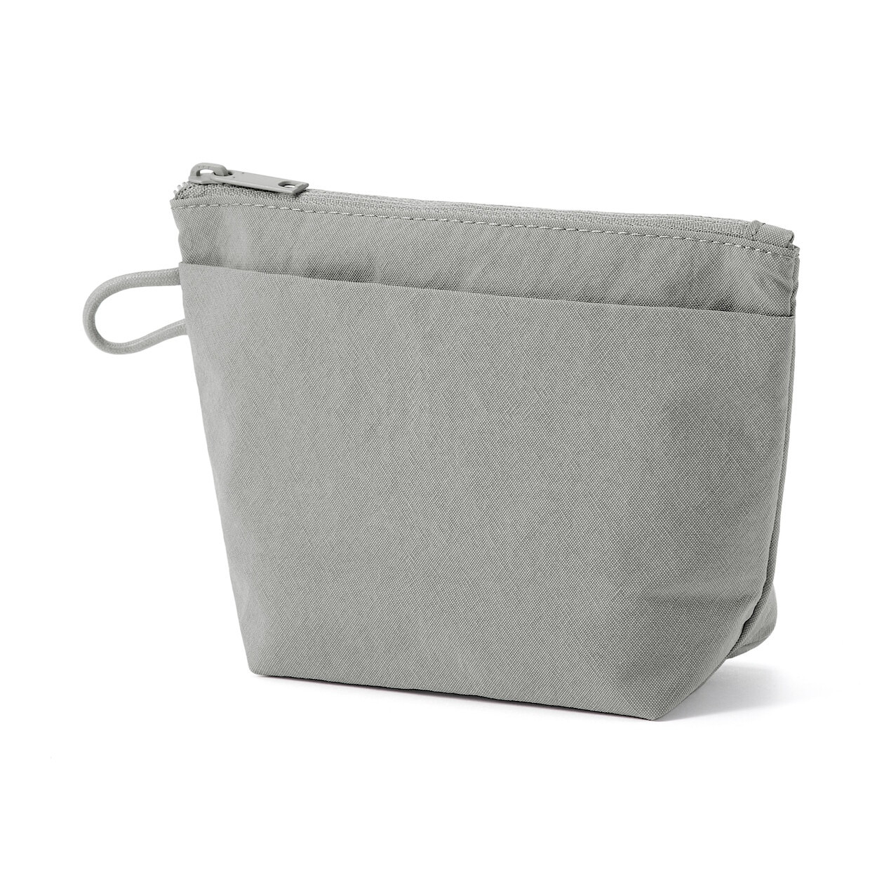 Samodzielnie stojąca kosmetyczka z szeroką podstawą zapewnia wygodny dostęp do zawartości i doskonale sprawdza się do przechowywania małych buteleczek oraz codziennych akcesoriów do makijażu. Wykonana z lekko teksturowanego nylonu o delikatnym, marszczonym wykończeniu, łączy miękkość z odpowiednią strukturą. Boczne kieszonki ułatwiają organizację, a bezpieczne zapięcie na zamek chroni przechowywane przedmioty. Idealna na co dzień i w podróży.