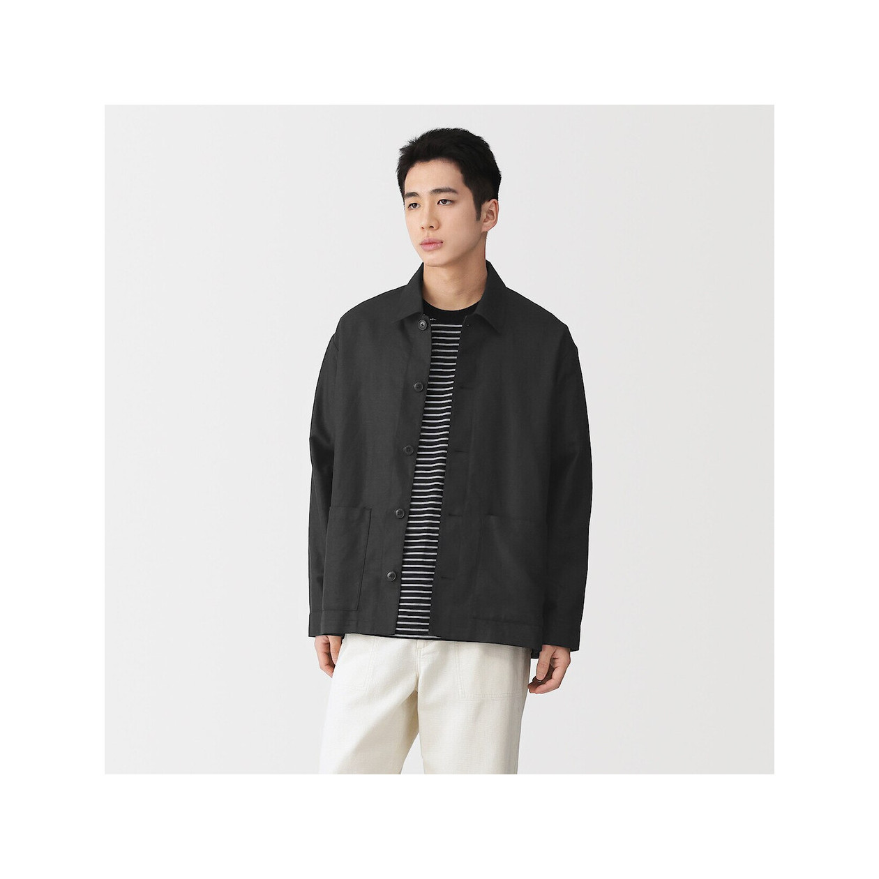 Lekka marynarka zapinana na guziki wykonana z przewiewnej mieszanki bawełny i włókien konopnych. Posiada praktyczne kieszenie i zapewnia naturalny komfort noszenia.