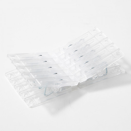 Spinacze do bielizny wykonane z poliwęglanu odpornego na promienie UV. Zestaw zawiera 10 sztuk.