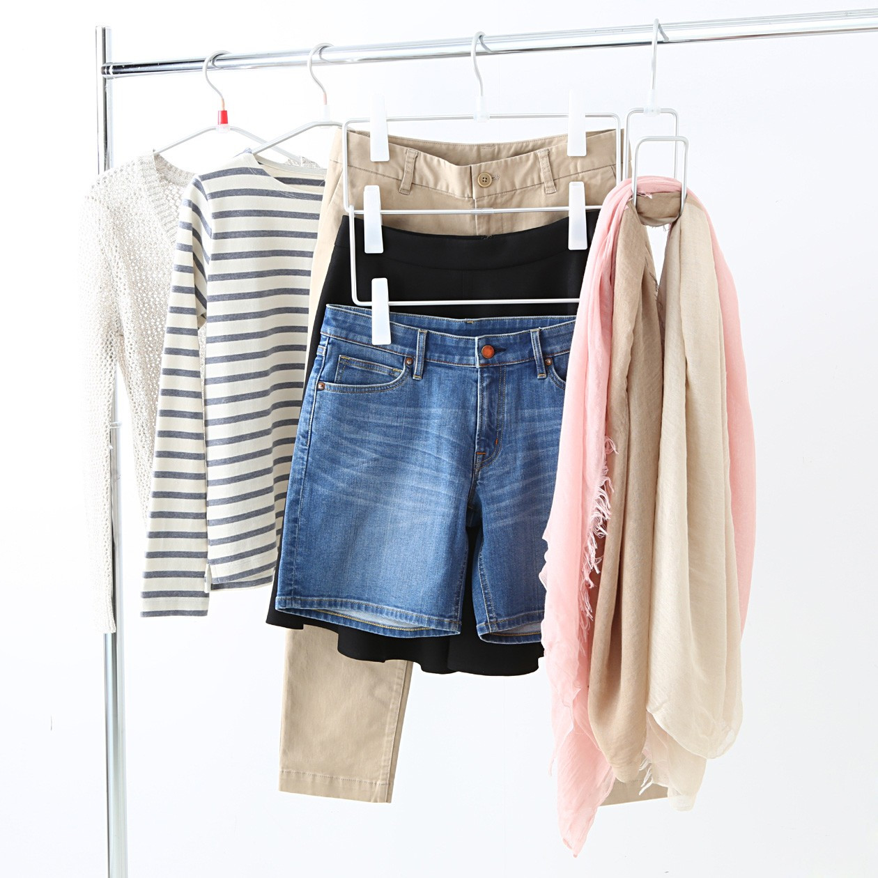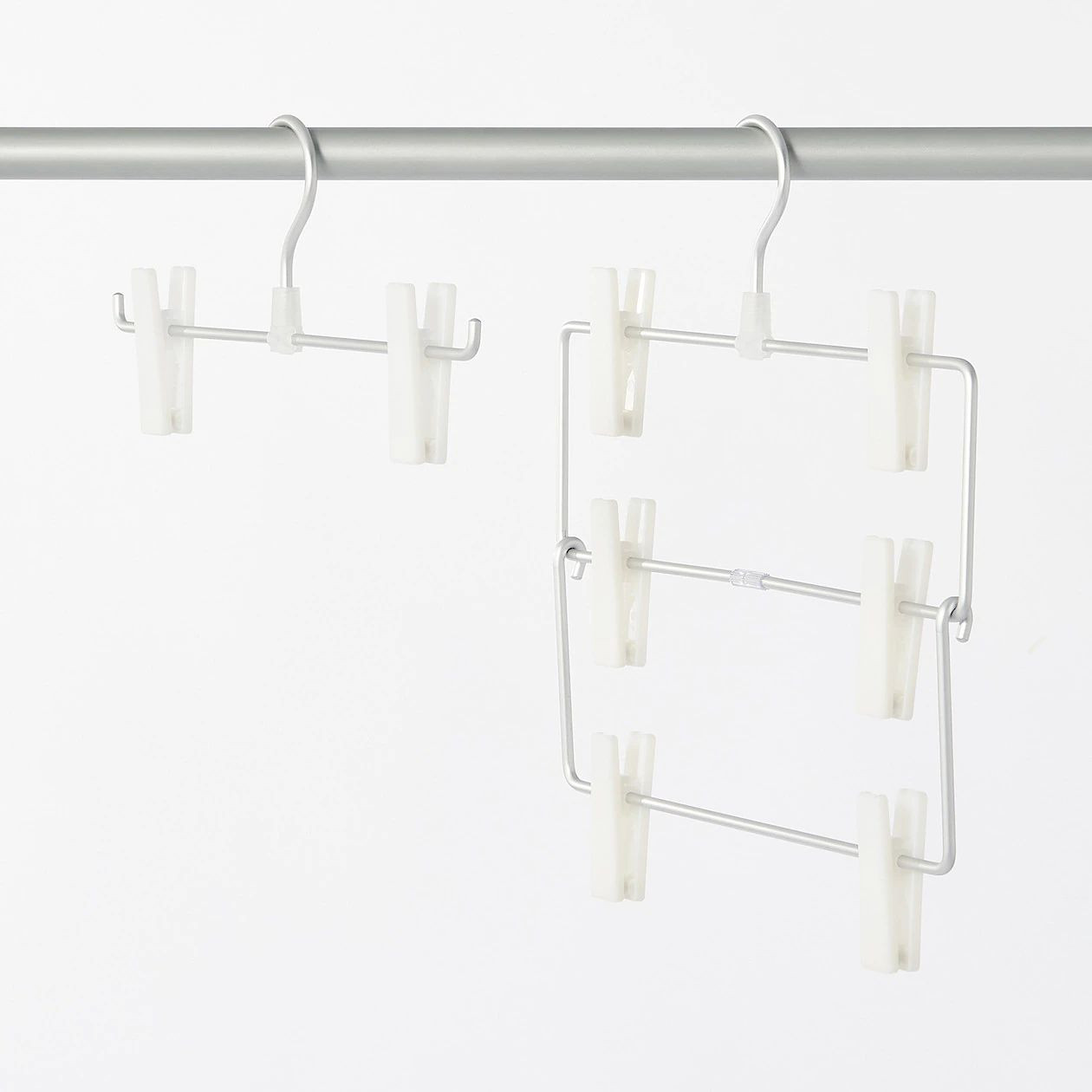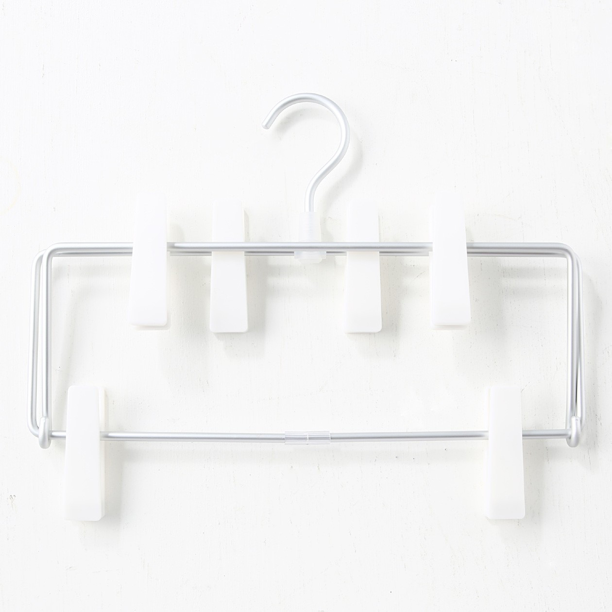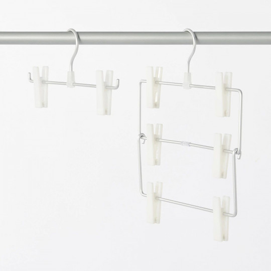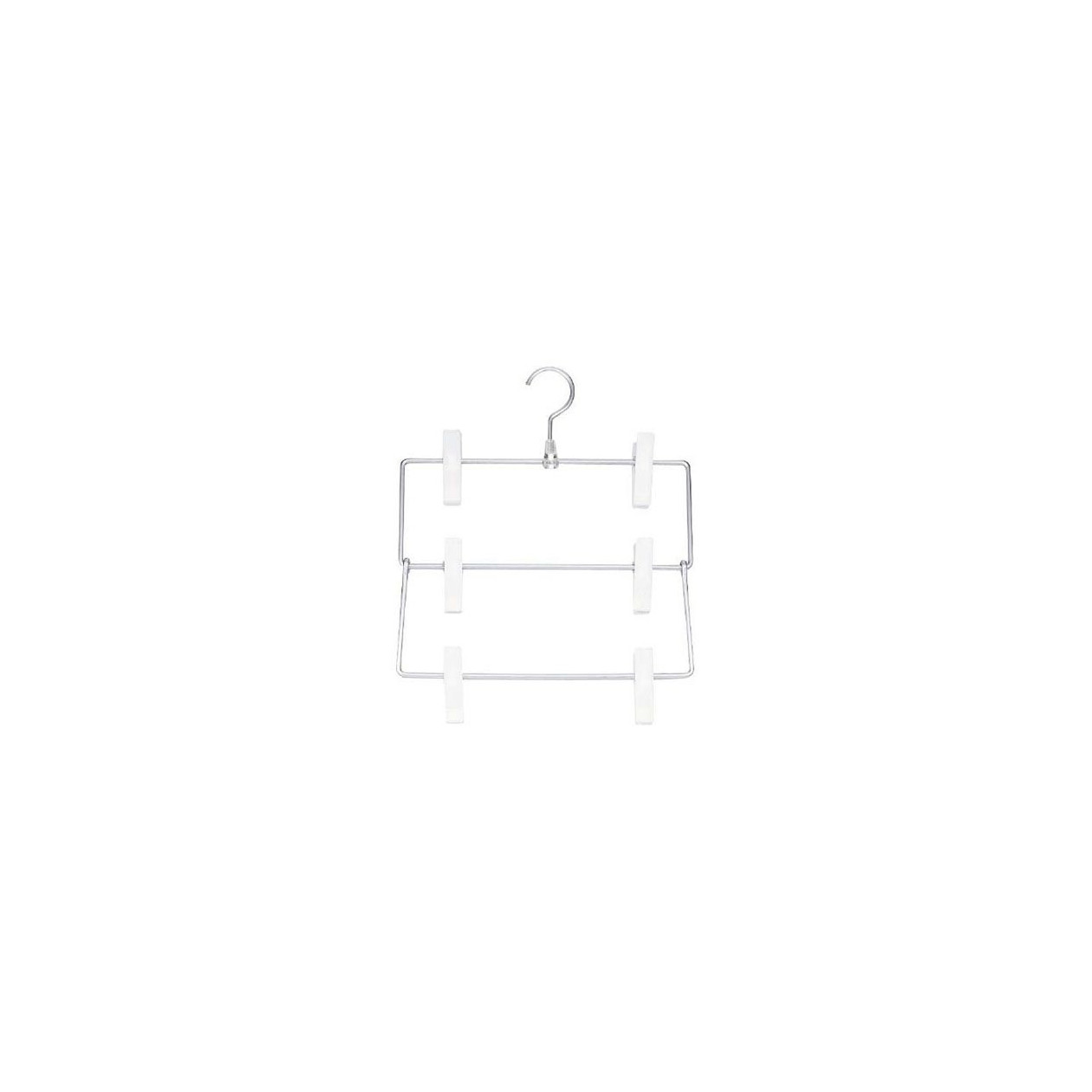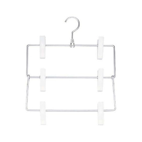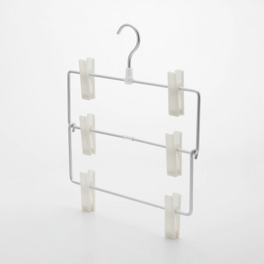 Uniwersalny i funkcjonalny wieszak, na którym można wieszać spodnie, ale także inne ubrania lub przedmioty. Dzięki niemu możemy zaoszczędzić miejsce w szafir i na jednym wieszaku dzięki trzem rzędom klipsów trzymać aż trzy pary spodni.
