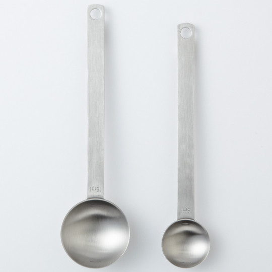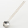 Łyżka z miarką o rozmiarze S. Wykonana ze stali nierdzewnej łyżka to przedmiot, który powinien znaleźć się w każdej kuchni. Jest wytrzymała i łatwa w czyszczeniu. Dzięki zawartej miarce możemy precyzyjnie odmierzyć nabieraną na nią ciecz.