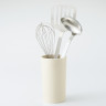Trzepaczka wykonana ze stali nierdzewnej w rozmiarze L. Dzięki niewielkiej wadze oraz wygodnej rączce świetnie sprawdzi się podczas prac kuchennych, nawet tych wymagających.