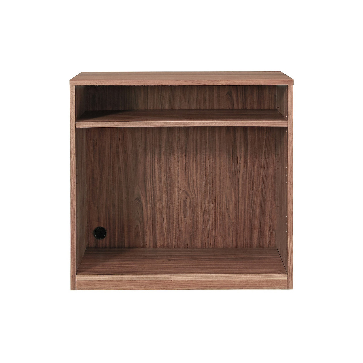 Praktyczna szafka z forniru orzechowego z regulowaną półką i wyjmowaną dolną płytą, umożliwiająca elastyczne przechowywanie. Wyposażona w tylny panel z wyjściem kablowym i zintegrowanym mocowaniem do ściany. Wykończona bezbarwną uretanową powłoką ochronną zapewniającą trwałość na co dzień.