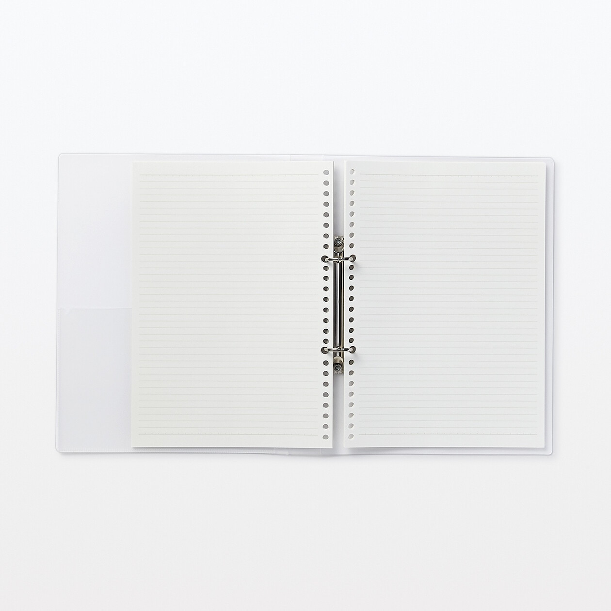 Segregator w formacie B5 z 2 ringami w kształcie litery D. Pomieści około 140 arkuszy papieru.
