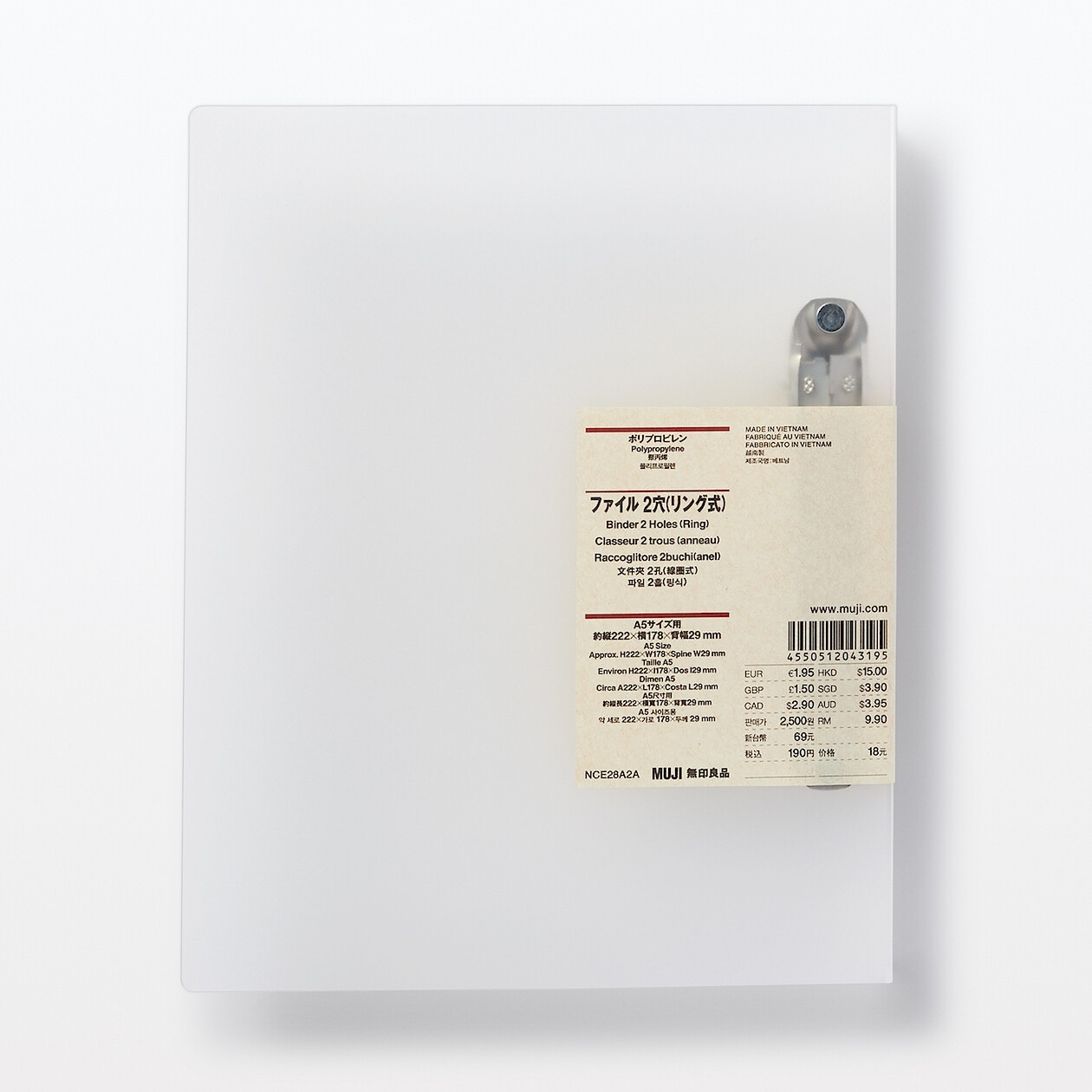 Segregator w formacie A5 z 2 ringami w kształcie litery D. Pomieści około 140 arkuszy papieru.