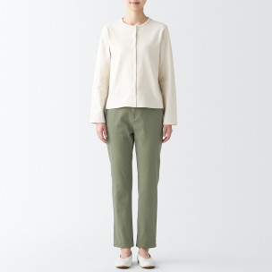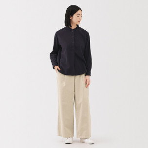 Współczesna interpretacja spodni hakama o uproszczonym, luźnym kroju. Dodatek elastomultiestru nadaje materiałowi lekkości, zwiększa jego odporność na rozciąganie i zagniecenia.