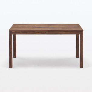 Stół z litego drewna orzechowego. Pod blatem zamontowane zostały trzy pojemne szuflady, które wygodnie przechowają domowe drobiazgi, sztućce czy jadalniane tekstylia. Lekka, minimalistyczna forma pozwoli na łatwą aranżację stołu zarówno w nowoczesnych, jak i bardziej klasycznych wnętrzach.