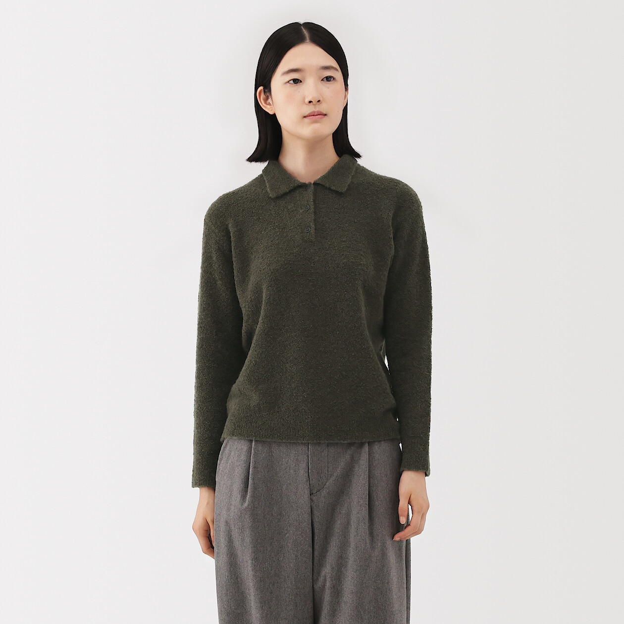 Sweter boucle polo khaki