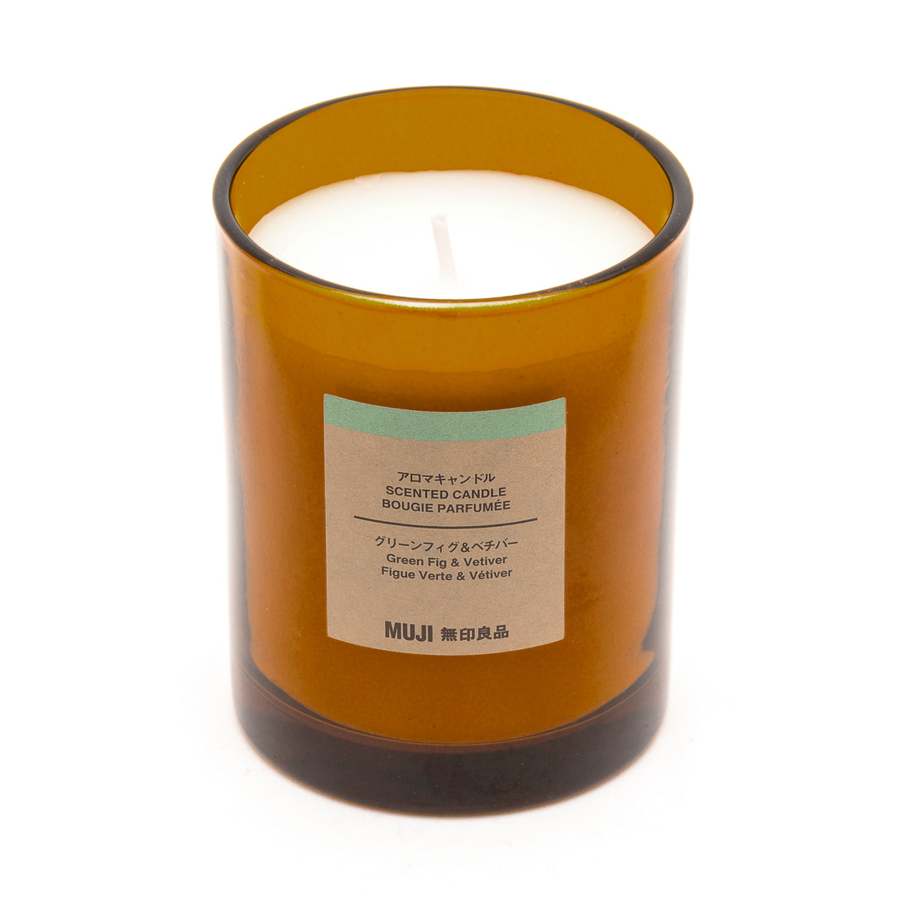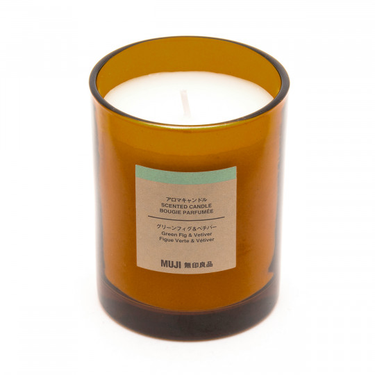 Świeca 1 knot - zielona figa i wetiweria. Wprowadź atmosferę i piękny zapach w całym domu dzięki świeczkom MUJI. Świeca z przykrywką, mieszana z naturalnego wosku, waga 198g. Czas palenia około 40 godzin. Wysokość (łącznie z pokrywką) 11 cm, średnica 7,5 cm.