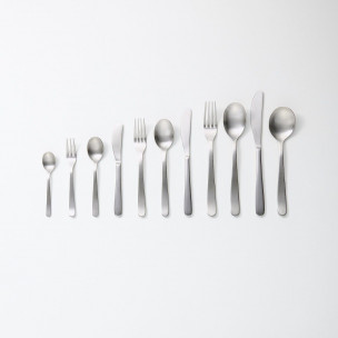 Minimalistyczna kolekcja sztućców ze stali nierdzewnej o prostych rączkach. Wykańczane ręczne przez doświadczonych rzemieślników na jednym z etapów 15-stopniowego procesu produkcji. Odporne na działanie korozji, nadają się do mycia w zmywarce.