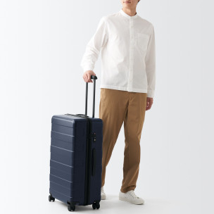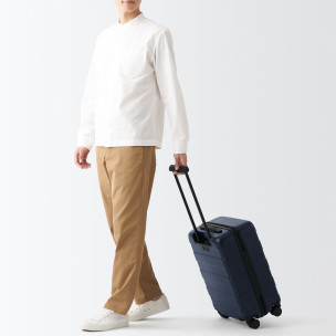Walizka na kółkach MUJI to przykład klasycznego, japońskiego minimalizmu – czysta forma, brak zbędnych ozdób, nacisk na funkcjonalność i estetykę wynikającą z prostoty.