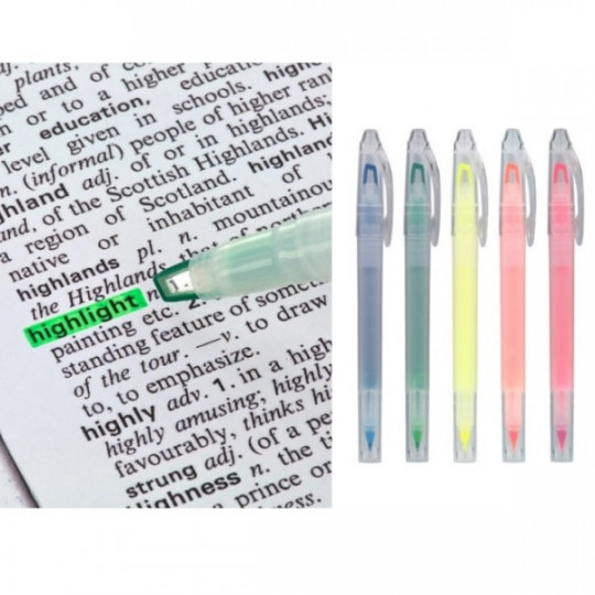 Dwustronny zakreślacz z końcówką w kształcie okienka, dzięki której zakreślany fragment tekstu jest dobrze widoczny.