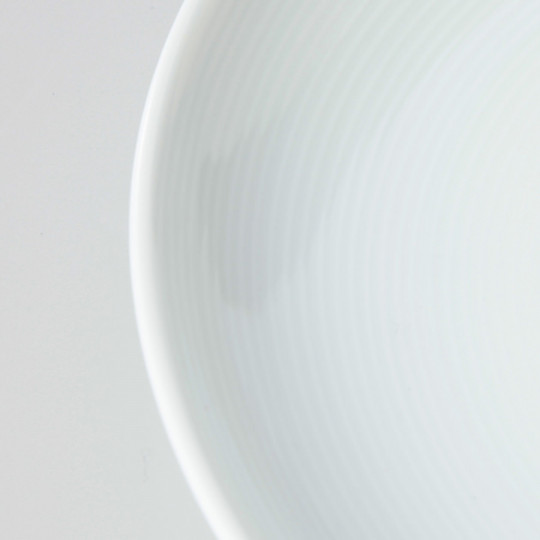Klasyczny okrągły talerz w kolorze białym, posiada minimalistyczny wzór. Został wykonany z porcelany Hakuji.